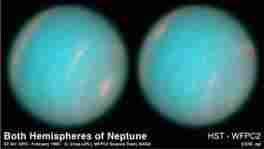 海 王 星 海 王 星 是 四 顆 氣 態 行 星 中 最 小 的 行 星 ﹐ 但 她 是 太 陽 系 中 第 四 大 的 行星 。 Neptune 這 個 字 在 古 羅 是 代 表 海 裡 的 神 ﹐ 估 中 文 翻 譯 為 海 王 星 。 海 王 星 常 被 稱 呼 為 天 王 星 的 姐 妹 星 。 原 因 是 從 大 小 、 重 量 來 看 都 很 相 似 而 海 王 跟 天 王 兩 顆 行 星 的 相 片 常 常 被 人 弄 錯 。 海 王 星 的 赤 度 直 經 是 大 約 49500 公 里。 她 比 天 王 星 距 離 太 陽 多 出 半 倍 。 海 王 星 也 是 一 顆 自 轉 速 度 很 高 的 行 星 。 一 “ 海 王 星 天 ” 也 只 不 過 是 17 小 時 14 分 53 秒 。 但 一 個 地 球 人 是 不 可 能 在 有 生 之 在 海 王 星 上 度 過 一 年 的 。 因 為 “ 一 海 王 星 年 ” 是 相 等 於 在 地 球 上 164 年 288 天 。 這 段 時 間 當 中 有 20 年 的 時 間 冥 王 星 比 海 王 星 還 要 接 近 太 陽 。 對 上 一 次 是 在 1979 至 1999 年 期 間 。 海 王 星 上 的 氫 (Hydrogen) 及 氦 氣 (Helium) 約 是 其 星 球 的 總 質 量 的 15% 。 大 氣 中 也 含 有 氨 (Ammonia) ﹐ 銨 氫 硫 化 合 物 (Ammonium Hydrosulfide) ﹐ 固 體 的 水 “冰”(water ice) ﹐ 以 及 甲 烷 「 或 作 “ 沼 氣 ”」 (Methane) 等 。海 王 星 上 層 大 氣 凝 固 了 的 甲 烷 把 太 陽 的 紅 色 光 線 吸 收 以 情 現 尉 藍 的 顏 色 。 天 王 星 發 現 了 以 後 ﹐ 天 文 學 家 發 覺 到 天 王 星 的 軌 道 並 不 符 合 牛 頓 的 定 律 ﹐ 所 以 被 認 為 在 天 王 星 軌 道 以 外 一 定 有 另 一 顆 的 行 星 影 響 其 公 轉 軌 道 。 因 此 而 發 現 了 海 王 星 的 存 在 。 海 王 星 上 的 構 做 跟 天 王 星 很 相 似 ﹐ 但 跟 其 他 兩 顆 氣 態 行 星 ﹐ 木 星 及 土 星 ﹐ 不 同 。 大 部 份 都 是 冰 及 石 塊 ﹐ 當 中 也 包 括 15% 的 氫 氣 及 少 量 的 氦 氣 。 在 海 王 星 的 中 心 有 一 個 約 跟 地 球 重 量 差 不 多 的 石 核 心 。 人 們 對 海 王 星 的 認 大 多 來 自 1989 年 8 月 25 日 ﹐ 航 海 家 2 號 飛 掠 此 星 時 所 得 的 資 料 。 小 量 則 來 的 地 面 及 哈 伯 / 哈 勃 太 空 望 遠 鏡 的 影 像 。 海 王 星 跟 其 他 類 木 行 星 一 樣 有 強 大 的 風 ﹐ 她 的 風 力 是 全 太 陽 系 中 最 強 的 ﹐ 每 小 時 可 達 2000 公 里 。 在 她 的 南 半 球 有 一 塊 跟 木 星 大 紅 斑 一 樣 的 大 暗 斑 ﹐ 直 徑 與 地 球 差 不 多 。 可 是 海 王 星 的 天 氣 轉 得 很 快 。 在 1994 年 ﹐ 哈 伯 / 哈 勃 望 遠 鏡 再 找 不 到 1989 年 航 海 家 2 號 所 發 現 在 海 王 星 南 半 球 的 那 塊 大 暗 斑 。 數 月 後 ﹐ 同 一 把 望 遠 鏡 發 現 海 王 星 的 北 半 球 出 現 了 一 塊 新 的 大 暗 斑 。 海 王 星 也 有 星 環
