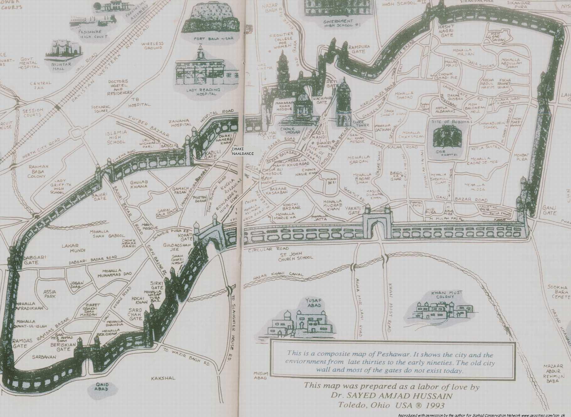 | Map of the Walled City of Peshawar | ||||||||||||||||||||||||||||||||||||||||