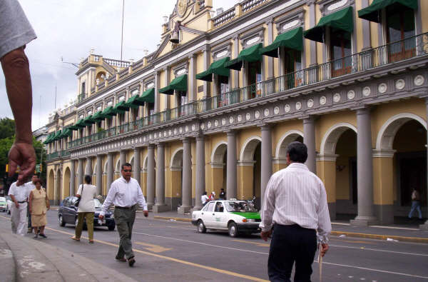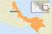 Xalapa está sobre la parte sur del Cerro Macuiltépetl en la vertiente norte del Cofre de Perote, a 100 km de Veracruz y 300 de México. Está, pues, donde la Sierra Madre Oriental inicia su descenso hacia el Golfo de México, a 1427 msnm, en un bosque de niebla, con clima templado y exuberante vegetación. Tiene medio millón de habitantes. |
