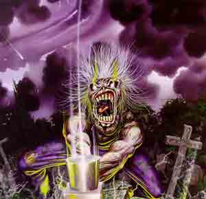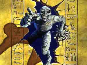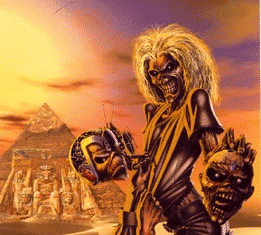 | Por supuesto que hemos visto a Eddie en cada disco de Iron Maiden.Ha sido el símbolo de ellos desde su inicio, y lo será hasta su muerte. Fue primeramente hecho por Dave Beasley, y posteriormente rediseñado por Derek Riggs, quien realmente lo convirtió en ese ser llamativo que actualmente conocemos. Tuvo que pasar por el visto bueno de cada uno de los integrantes de la banda, y por fin en 1980, la mascota quedó definida y se empezó a regar por todo el globo. Derek Riggs constantemente actualizó y retocó a este personaje, para cada portada de los discos, y lo adaptaba según el progreso y evolución de la banda. Y desde mi punto de vista, ésto último en verdad se nota, ya que empezó con un Eddie solitario, buscando una identidad; y ahora lo vemos en un Brave New World/Rock In Rio de un tamaño abismal sobre el horizonte, demostrando que él es quien controla el mundo. ¿Mentira que Maiden domina en el mundo de la música? Eddie: el sexto (ahora séptimo) integrante y mas conocido de la Bestia. |