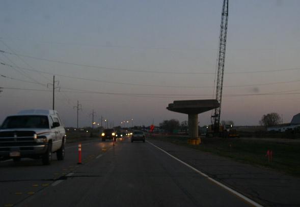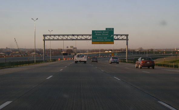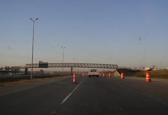 Motorist warning signs on NB I-29 for the work zone. SB I-29 near Russell Street. SB I-29 near M.P. 81. SB I-29 in the work zone near Madison. Usually isn't all the overpass taken all the way down?