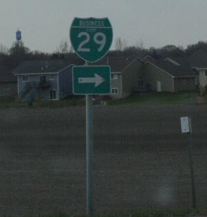 A BGS on NB I-29. A guide marker on the ramp from NB I-29. NB BUSN Loop I-29 south of Elk Point. NB BUSN Loop I-29 in Elk Point.