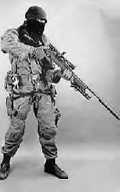����������Navy SEALs use .50 caliber sniper rifles. They use multipurpose rounds which explode on inpact on steel and on humans. Also, with these rifles, they can hit a target in the same place over and over again from a distance of almost three quarters of a mile away. |