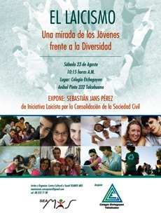 Entonces, ante el desafío que tengo hoy con Uds. de hablarles del laicismo, recurro a la autorreferencia como punto de partida, y me pregunto que significaba ser joven cuando yo lo fui. Viví siendo joven una época que considero excepcional, y tremendamente motivante para cualquier joven, para cualquier rebelde con o sin causa. De mis días de niño, había sabido de las luchas de independencia de los países del naciente Tercer Mundo, de las llamadas luchas de liberación nacional, de los acontecimientos de París en manos de los estudiantes, hace justamente 40 años; de algo tremendamente inevitable desde el punto de vista de la cotidianidad como lo fue la Revolución Cubana y la emergencia de la rebeldía juvenil en América Latina; todos esos eventos vinieron a ser mi preámbulo del momento en que advine a esa condición especial de la juventud. Pero, también, fueron los años de la carrera espacial, desafío tecnológico y mediático, que apasionaba con su día a día, la aparición de los trasplantes de órganos, los primeros antecedentes masivos de la cibernética, y la revolución de las flores, donde la libertad sexual surgía como un antecedente irruptivo, de la mano de la masificación de la píldora anticonceptiva. Fueron los años en que muchos sueños se derrumbaron, y terminaron en dolores y desagarradas pérdidas, de las cuales muchos no pudieron recuperarse. No es un cuadro completo de mi momento juvenil, pero que traigo a colación para demostrar con no poco entusiasmo cuando yo viví ese momento histórico de la Humanidad y de mi vida, que para Uds. sin duda tiene un alcance arcaico, pero que quiero proponerles como un punto de partida, para que Uds. miren con amplitud la circunstancia de ser jóvenes en el tiempo que les toca vivir, y se pregunten que si este señor viene a hablarnos de su patética mocedad, que puedo decir yo de mi tiempo, de mi circunstancia, de mi apuesta de vida, de mi percepción del mundo, del tiempo histórico que me toca vivir. Y por cierto, esto del “tiempo histórico” no tiene porque referirse a cosas que devienen de lo más trascendente, no tiene porque ser una mirada con el peso del mundo en que estamos, sino también tiene que ver con la pequeña historia de cada día, de lo que soy, de lo que he hecho con mis limitaciones, y de lo que he soñado por hacer. Entonces, pensemos el tiempo que vivimos, que como jóvenes les toca vivir, y veamos cuales serán los privilegios que reivindicarán en vuestros años de la madurez, por haber vivido como jóvenes el tiempo de hoy. Tal vez surjan los detalles de las injusticias que han percibido, porque todo joven asimila con intensidad cuando lo justo es atropellado; tal vez recuerden aquella maravillosa explosión de rebeldía que fue la “revolución de los pingüinos”, que rompió todos los esquemas de un proceso político nacional donde todo parecía previsible; algunos tal vez algo recuerden que en sus día de niños, cinco mil chilenos se desnudaron alegremente en un parque de Santiago. No serán pocos los que recordarán el sorprendente encuentro ilimitado de sociabilidad virtual del Facebook; los temores del hambre a escala planetaria, especialmente entre los más pobres, porque los alimentos dejaron de ser tales, para convertirse en materia prima de combustibles; la angustia energética, la encrucijada del cambio climático, producto de las emisiones de gases nocivos para la estabilidad ambiental planetaria, y otros recordarán cuestiones como las pachotadas de George Busch; la singularidad de Hugo Chávez; y el momento en que una píldora se convirtió en una tema nacional, cuando debía ser un tema personal; recordaremos los embelesos del Chat, la mirada al mundo a través de You Tube, la promesa del I-Phone, cuando estaba pronto a invadir los mercados. No pocos recordarán haber recorrido medio planeta para encontrarse con el Papa, y una buena parte tal vez sonreirá recordando carreras de auto ilegales, o el tiempo en que pudo tener sexo por primera vez. La invitación es entonces a pensar en cuales podrían ser las señales que queden en vuestra memoria, como las afirmaciones de vuestra condición juvenil, y que determinarán en definitiva el resto de sus vidas. ¿Cuál es el mundo en que vivimos, y cual es el rol de cada cual, en tanto joven, en tanto individualidad, en tanto proyecto de vida que deberá consumarse en las décadas venideras, en tanto persona que desea realizarse en algo que como tal empieza a diseñarse, a esbozarse en la conciencia de cada cual? Ser joven es una oportunidad que se perderá. Luego, pronto, unos antes que otros, pero, que inevitablemente, por ley biológica, tiene un final más pronto del siempre esperado. Y como oportunidad debemos asumirla. Dicen que las mentes más jóvenes tienen mayores habilidades que las mentes más adultas, para los procesos de percepción, y por lo cual, aprenden y aprehenden más rápido. Yo creo que si. Lo ha demostrado la inserción del joven en las disponibilidades del mundo rediático y digital. Las lógicas de los procesos vertiginosos son más fáciles de captar por una mente joven, ansiosa, que por una mente adulta, más apegadas a la experiencia. Por ello las grandes corporaciones que diseñan las ofertas que serán ofrecidas en los mercados, recurren a ejecutivos jóvenes o a diseñadores e innovadores que pueden ver con más celeridad los objetivos y las alternativas. Entonces, lo que quiero en esta jornada proponerles como elementos de reflexión, es abrir su mente para tratar de entender nuestro mundo de hoy, más allá de las representaciones que nos entregan los medios o la cultura global y mercantilizada, que trata de determinarnos. Mi invitación es a tratar de abrirse a una reflexión, con vuestra capacidad de abarcar y sintetizar, con vuestra lógica juvenil, y a soñar, como todo joven puede hacerlo, sobre cual sería el tipo de sociedad, el tipo de realidad, el tipo de cultura, que les gustaría h