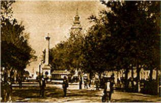 Alameda de las Delicias (actual Avenida Libertador Bernardo O'Higgins) Recorre Santiago de este a oeste, constituyendo por muchos años el lugar de convergencia de las manifestaciones populares (huelgas, mitines, actos políticos, recepción de visitas de Estado, etc). Se puede decir con certeza, que ha sido escenario de los grandes acontecimientos nacionales desde los orígenes de la República. La imagen data de 1900.