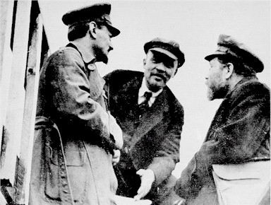 Los líderes revolucionarios rusos. León Trotsky, jefe del Comité Militar Revolucionario, y Vladimir Ilich Ulianov Lenin, líder e ideólogo del Partido Bolchevique, quienes encabezaron la toma del poder por parte de los soviets de obreros y campesinos, en la Rusia de 1917.