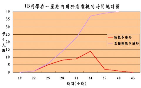 直方圖、頻數多邊形/頻數曲線、累積頻數多邊形/累積頻數曲線(上列三種統計圖皆是基於同一組數據而繪成)