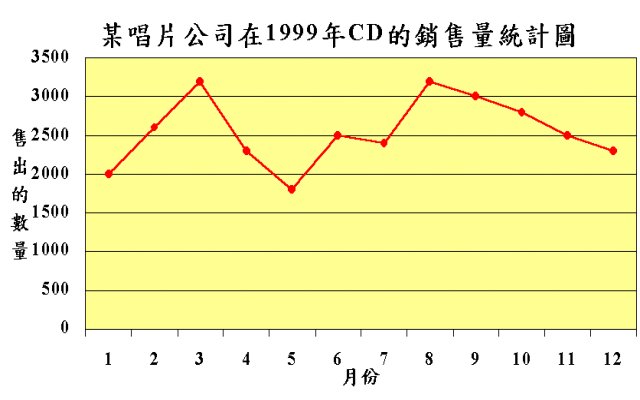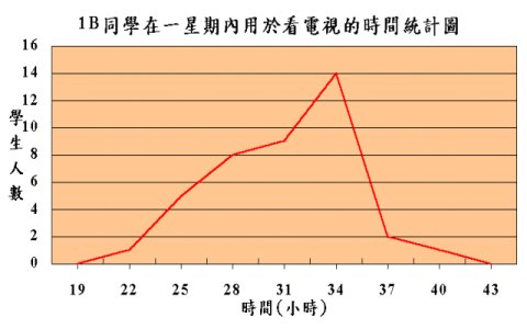 折線圖通常用來顯示在一段時間內數據的變化。它與頻數多邊形不同的地方在於後者是由0開始至0終止,但折線圖沒有這個限制。但由折線圖起,以下所介紹的統計圖的不動數據都要有連續關係,以方便作出比較。