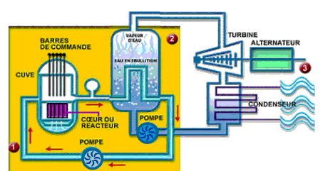 turbine qui entraîne l'alternateur produisant l'électricité. Le circuit