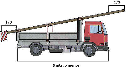 Si el vehículo mide 5 metros o menos de longitud, la carga podrá sobresalir 1/3 (un tercio) de la longitud del vehículo tanto por delante como por detras.