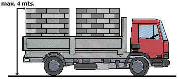 En cualquier tipo de vehícuo la carga podrá llegar a alcanzar 4 metros de altitud contando desde el suelo.
