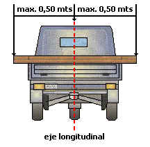 sobresalir 0,50 metros a cada lado del eje longitudinal del vehículo.