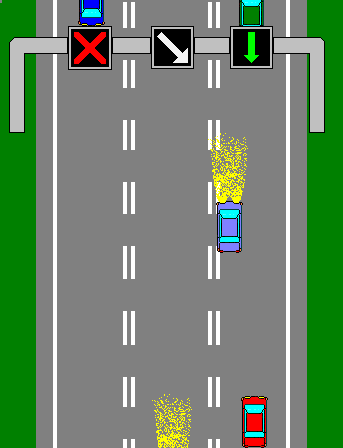 hacia el carril que apunta la flecha ya que va a quedar cerrado en poco tiempo.