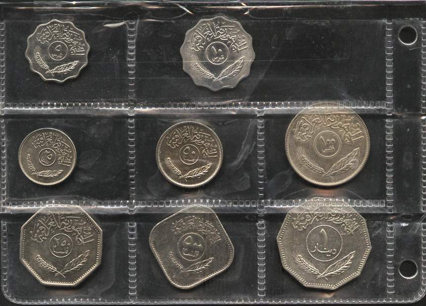 This  coins set is  the first Iraqi Republic coins issue set and  it contain these coins :