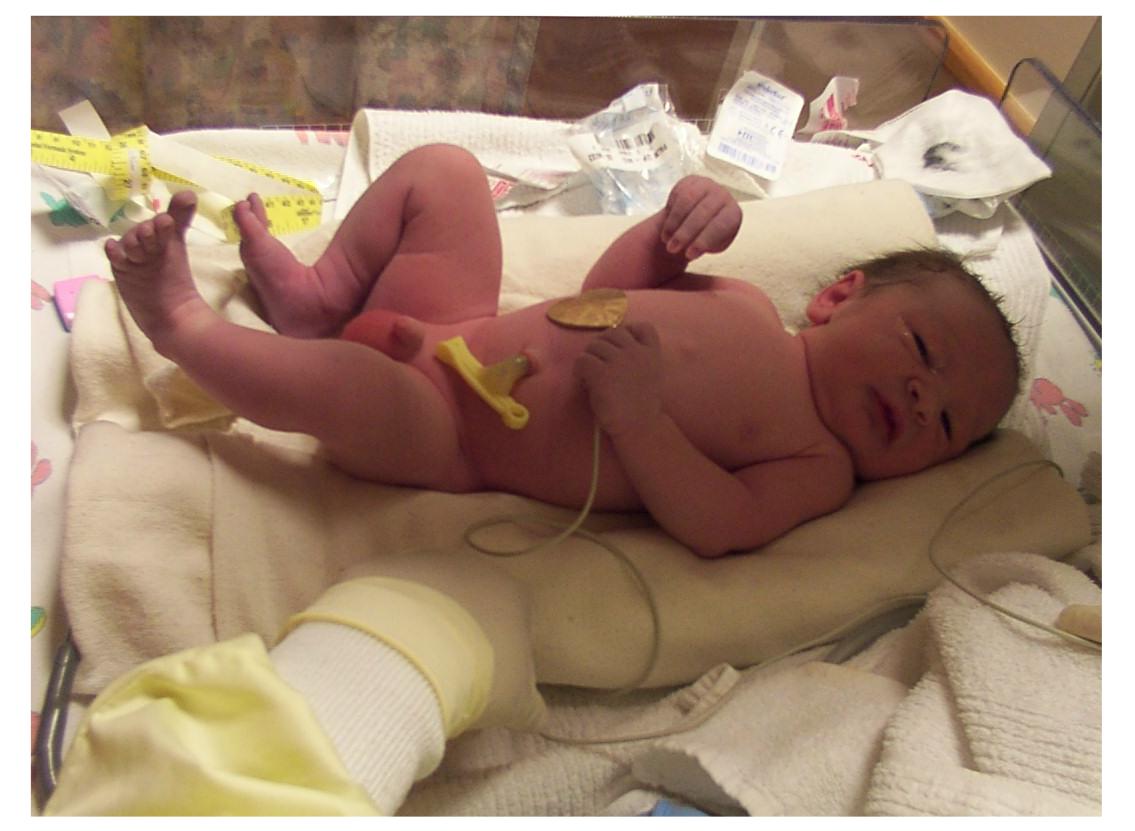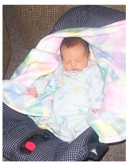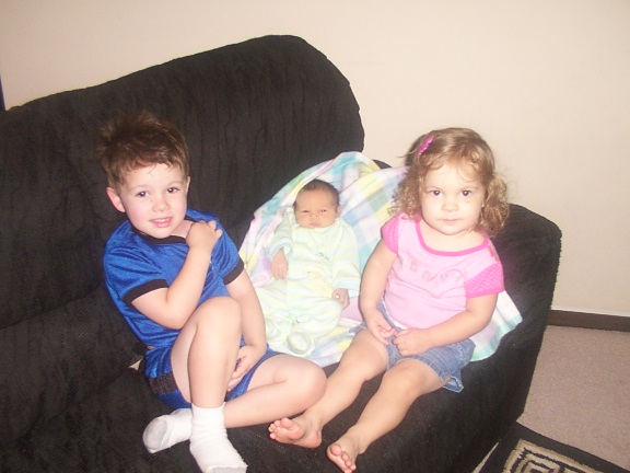 Hayley and I are sitting with our new brother, Skylar. He's only a few days old in this picture.
