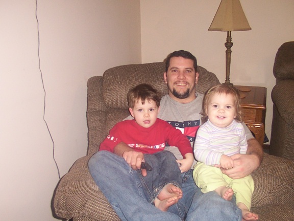 | James holding Brayden and Hayley January 2004 |