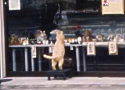 ☆服裝店櫉窗內的貓兒打著可愛的蝴蝶結戴著眼鏡,好像在說著快來買東西吧~ |
