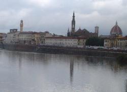 Rainbow. 在進入翡冷翠之前,雨停了。突然之間,在初放晴後的天空,出現了一道淡淡的彩虹。我們坐在車上觀賞著一條完美的半圓形劃過天際,在灰藍的天空中漸漸地成形。然後,有人發現了在虹的外圍有一道更淡的霓,若隱若現地畫出一個更大的圓。能夠在翡冷翠看到這樣美麗又完整的彩虹,仿佛在迎接著我們的到來,向我們預告著這城市獨特的美麗。