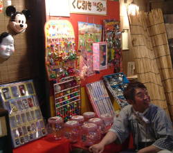 走進雜貨店, 喚回了許多兒時的回憶, 有小小包的零嘴一包包排列整齊地貼在一張大紙板上付10元可以撕下來一個, 有一大張的抽獎紙板上面是數十張小小的貼紙, 撕開後就可以知道有沒有中獎, 有一根一根的麥芽糖放在一個透明的圓罐子裡, 還有一箱一箱的彈珠汽水放在地上. 除了吃的還有玩的, 還記得那種小時後在夜市常看到的用鐵釘在木板上圈出來的打彈珠台嗎? 只是, 在二十一世紀的台灣, 被眾多旳便利商店侵佔的城市裡, 已經快找不到這種街頭巷口的小雜貨店了...