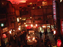 我們在新宿住的新宿王子旅館位在歌舞伎町(Kabuki-cho), 是夜生活的大本營, 在街上有許多五顏六色的店, 放肆地寫著 "人妻戀愛俱樂部", "風俗無料情報館". 在路邊有許多人發送傳單, 廣告面紙, 有一些人穿著印著店名螢光色的厚大衣走來走去, 還有人手持著一個大招牌就站在馬路旁, 當做活廣告...