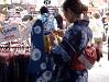 | 築地市場站一出來就聞得到重重的魚腥味,出站前有兩面很大面的彩色壁畫,顏色很鮮豔亮麗,出站前就放了一個大大的牌子:市場週日休市。我們前面的兩個女孩一看到那牌子就傻了,當場站也不出就回去坐反方向的車走了。 | 而我則是一看到這兩片牆壁,就捨不得離開了。馬上拿出新買的T1試拍,捕捉這細膩的日本彩繪。 | 當我們在涉谷看到一套(浴衣, 腰帶, 鞋子)才¥8900日圓的美麗浴衣時,實在很想買一套穿去火花大會作紀念, 但是看到店員幫衣服模型在穿上浴衣時, 突然明白我們就算買回來了,自己一個人是無法穿好綁好腰帶的,只好放棄,真可惜.... | ![]() |