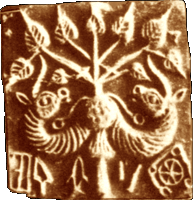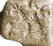 The three headed motif on this conch-shell seal (above), found in the Dvaraka excavations, corroborates the reference in the scripture Harivamsa that every citizen of Dvaraka should carry a mudra or seal of this type.