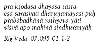 "Pure in her course from the mountains to the ocean, alone of streams Sarasvati hath listened."
