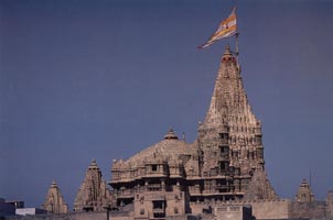 "After all the people had set out, the ocean flooded Dvaraka, which still teemed with wealth of every kind. Whatever portion of land was passed over, the ocean immediately flooded over with its waters."