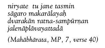 This sanskrit verse from the Mausala Parva of the Mahabharata, describes the disappearance of the city of Dvaraka into the sea.