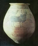 This piece of pottery from the lowest level of Harappan excavations with pre-harappan writing is deciphered as ila vartate vara, referring to the sacred land bounded by the Sarasvati River, described in the Rig Veda.