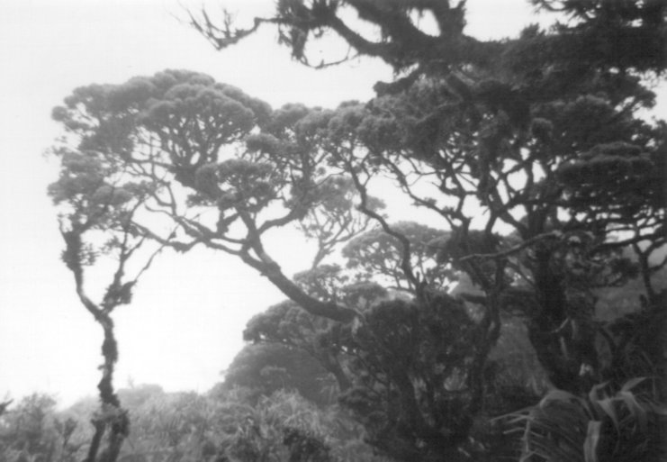 | Centuries-old stunted pine trees on Mt. Madja-as. Only scrub, `bariw' and stunted pines grow on the summit ridge which is exposed to constant gale-wind. | ||||||||||||||||||||||||||||||||||||||||