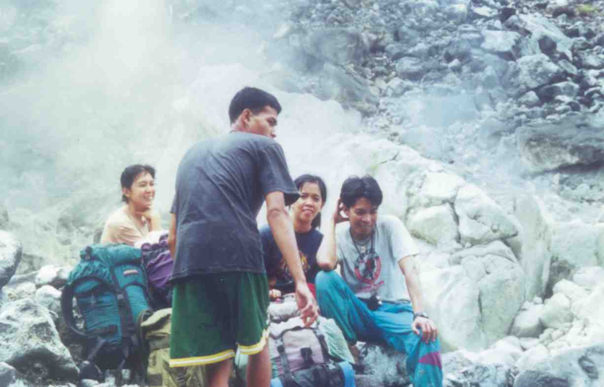 | Singarong Backpackers Sulfatara '97 Party : (L-R) Nathaniel Dichoso, Pedro Palabrica, Joel Berina, June Cristal and Dennis Ella. |