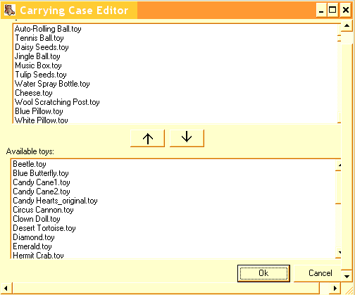 Having troubles getting my(or any) toyz to appear in petz 5? well I think i have an easy solution for you ^^ First you must download "Tinker" The toy hexer Tessas brother made. Open the program. Now at the top it says File. Goto that and then click modify carrying case. Now something like this should pop up: