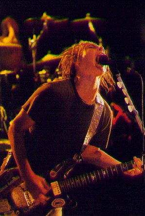 He's not a feral like his friends...he's just...not being himself onstage, if you get my drift. Come to think of it, wouldn't you say he looks...*unhinged* in this pic? Like in a scary-movie kind of way?