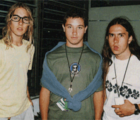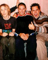 There is, of course, a real story behind the picture. It was taken in August 1999 by ex-webmaster smash when she met silverchair (in Sydney, I think) prior to a concert. (There were other pictures as well, but they couldn't be found.) She said that first she met Ben, who was "very nice" and posed for pictures. Then she met Chris, and even though she disliked him at the time, she had to admit he was "very nice as well." Chris' girlfriend (also nice) was there and even snapped some pictures of smash and her friends with Ben and Chris. Then, along came Daniel in a car, and he wasn't quite up to signing anything that day, let alone hopping out of the car for a picture. He just wanted to be left alone: