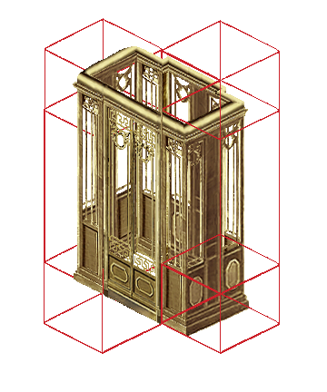 Download the LITTLE RED BOX toolThis is a tool I created because I seemed to always have objects poking because I would make them too big or too long, not because of the z buffers. It is a box as close an approximation to the size of a diagonal tile (height, length, width) within the sims game. It is not exact, simply because I didn�t know how to make it so. But it will help you make a series of objects that fit next to one another without overlapping or infringing upon each other. I have tested it in Photoshop6 and PSP7. It is in Photoshop format because PSP will read Photoshop files, but Photoshop will NOT read PSP files!