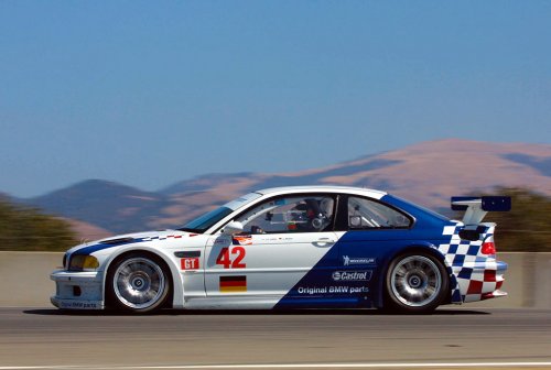 The construction deadline had been very tight as the opening round of ALMS was to take place on March 17th - the gruelling, car-breaking 12 hours of Sebring. Because of the schedule, for this race - the first of 10 rounds contributing to the ALMS championship - BMW entered just one V8-engined M3-GTR driven by J.J. Lehto and Jorg Muller as a fully factory-backed, Schnitzer-ran effort. PTG would not take delivery of their cars until July for the Sears Point race. Lehto and Muller finished tenth overall and third in GT class behind two 911s. A better reflection of the car's potential is shown by the race pace - the car recorded the fastest GT lap on lap 32, which was a record for the Sebring circuit. At Donnington on 14th April, a second works M3-GTR appeared in the hands of Frederik Ekblom and Dirk Muller. Both pairings failed to finish but were classified 10th and 11th in the GT class. The tide now turned the way of the BMW and the M3-GTR won GT class in each of the remaining races, tallying 7 ALMS wins in total. This began with a 1-2 at Jarama in May followed by a 1-2-3-4 when PTG took delivery of their M3-GTRs at Sears Point in July. To balance honours out a little, PTG took a class win from the Schnitzer cars at Portland in August. There were also back-to-back 1-2 results at Mosport, Mid-Ohio, Laguna Seca and the Petit Le Mans at Road Atlanta. By the end of the season, BMW had destroyed the opposition. Muller won the driver's championship, Schnitzer took the constructor's title and BMW the 'brand championship' in what was their most important foreign market. It was an extraordinary feat considering that BMW were outnumbered by Porsche 911 GT3s by a ratio of 4:1.