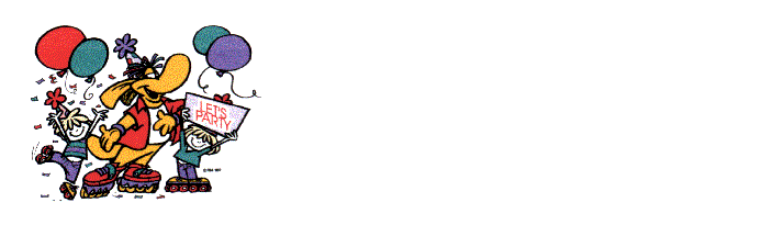 | Birthday Parties!!! Available Times: Friday: 4:30 pm - 7:00 pm Saturday: 1:00 pm - 7:00 pm (Any 2 to 2.5 hour time slot during this session) Saturday Evening: 7:30 pm - 10:30 pm Sunday: 1:00 pm - 3:30 pm or 2:00 pm - 4:30 pm Party Package Includes: * Admission * Free Quad Skate Rental (Roller Blade Rental $3.00, limited supply ) * Pizza Slice or Hot Dog * Soft Drink * Party Place Mats * Invitations Price: $10.00 per person - minimum of 10 Note: You supply your own Cake, Candles and a Knife to cut the Cake. No other food or drink is permitted into the Facility. Additional food and drink can be purchased from our Snack Bar. Goody Bags may be given out to your Party Guests as they leave. Please call to confirm your approximate count a day or two prior to your party! No Deposit is necessary when skating with the public Advance Reservations are required Please call to confirm or cancel your Party Roller Blades are welcome |
