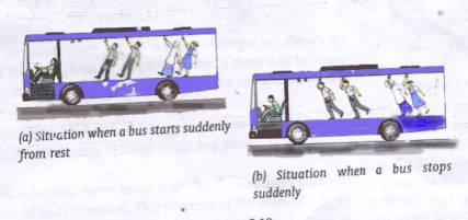 The explanation about the figure 5 is “we are likely to fall backwards if the bus is starts suddenly from rest and if the moving bus stops suddenly, we are likely to fall forward”. The textbook also explains what causes the situation happen. It says “the bus moves suddenly from rest, our feet are carried forward but the inertia or our body tends to keep us at rest. This causes our body to fall backwards. When the bus stops suddenly, our feet are brought to rest, but the inertia or our body tends to continue its forward motion. This causes our body to fall forward”. We find that the example and the explanation given are quite clear but what happen if the bus moves with a very slow motion? Is the situation still the same? So, we think the example is not really enough to describe inertia that is happen in our daily life.