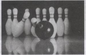 Figure 14 A bowling ball has more inertia than wooden bottles