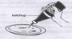 (a)   In order to dislodge ketchup from the bottom of a bottle, the bottle is normally given a jerk as shown in Figure 16 (a).