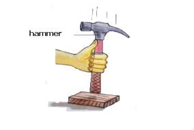 (c)   The head of a hammer can be tightened onto the wooden handle by applying a knock on the handle as shown in Figure 16 (c).