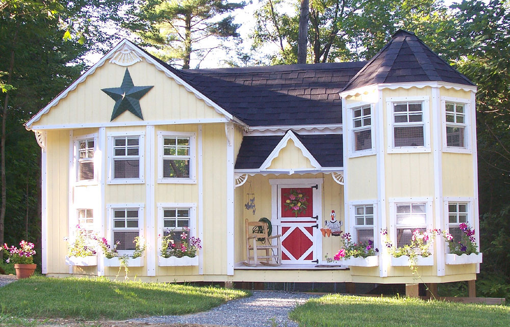 | Oh Yes, this was for Daisy. The most wonderful little RI Red Hen! given to us by Don & Sue Nelson. Daisy passed away this past summer..There won't be another, she was so special... Daisy is greatly missed : (. Her mansion has some very special retired & semi retired birds that live in it. |