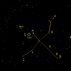 - Cyg (Sadr) เป็นดาวฤกษ์สีขาวเหลือง