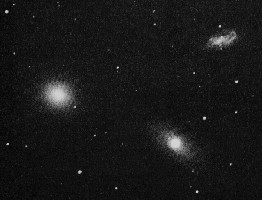 M105 เป็นกาแล็กซีไม่มีรูปร่างแบบ eo มีความสว่างปรากฏ 9.3 อยู่ห่างจากโลก 25 ล้านปีแสง |