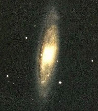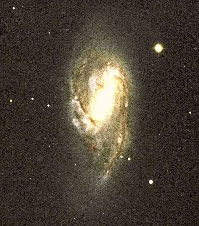 M66 เป็นกาแล็กซีกังหันแบบ sb มีความสว่างปรากฏ 8.9 อยู่ห่างจากโลก 35 ล้านปีแสง |