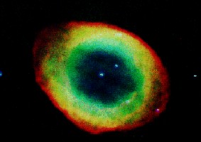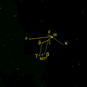 M57 เป็นเนบิวลาดาวเคราะห์ที่มีชื่อเสียงที่สุดมีความสว่างประมาณ 8.8 อยู่ห่างออกไป 2,000 ปีแสง จริงๆแล้ว มันมีรูปร่างเป็นกระบอกกลวง ที่หันด้านปากกระบอกมายังโลก เกือบพอดี จึงทำให้เห็นเป็นวงแหวน |