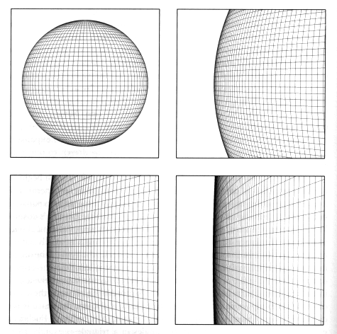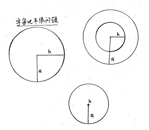 溫哥華八六年世界博覽會的標誌,是一座巨大的圓球玻璃建築,你若攀到頂上,會不大感到它是球面,只覺到有微微的弧形,如果你是一隻小螞蟻,爬到那頂上,你會完全感覺不到它是球面,你會感覺到它的表面是平坦的。倘若你把這座圓球放大或膨脹了幾千幾萬倍,你會認爲它的面是平坦的,倘若將它膨脹係數增大到爲1040以上,你在它的圓面上所見,就是一望無際的大平原,地平線的邊緣,是那麼遙遠,你窮極目力,也看不到它了,也看不到它後面的情景了。