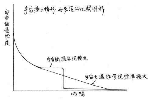 宇宙「大爆炸學說」與「膨脹學說」的比較圖解 馮馮繪 網註:古斯的「膨脹學說」另譯為「暴脹學說」