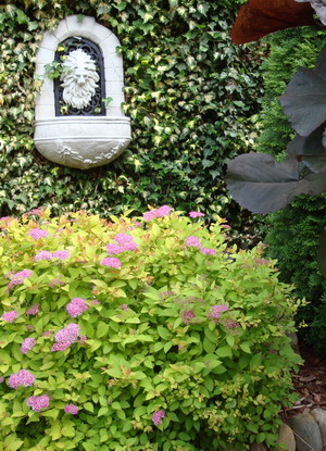 日本繡線菊,花期長達數月,嫩綠微黃的葉子,秋天轉為金金黃黃。
